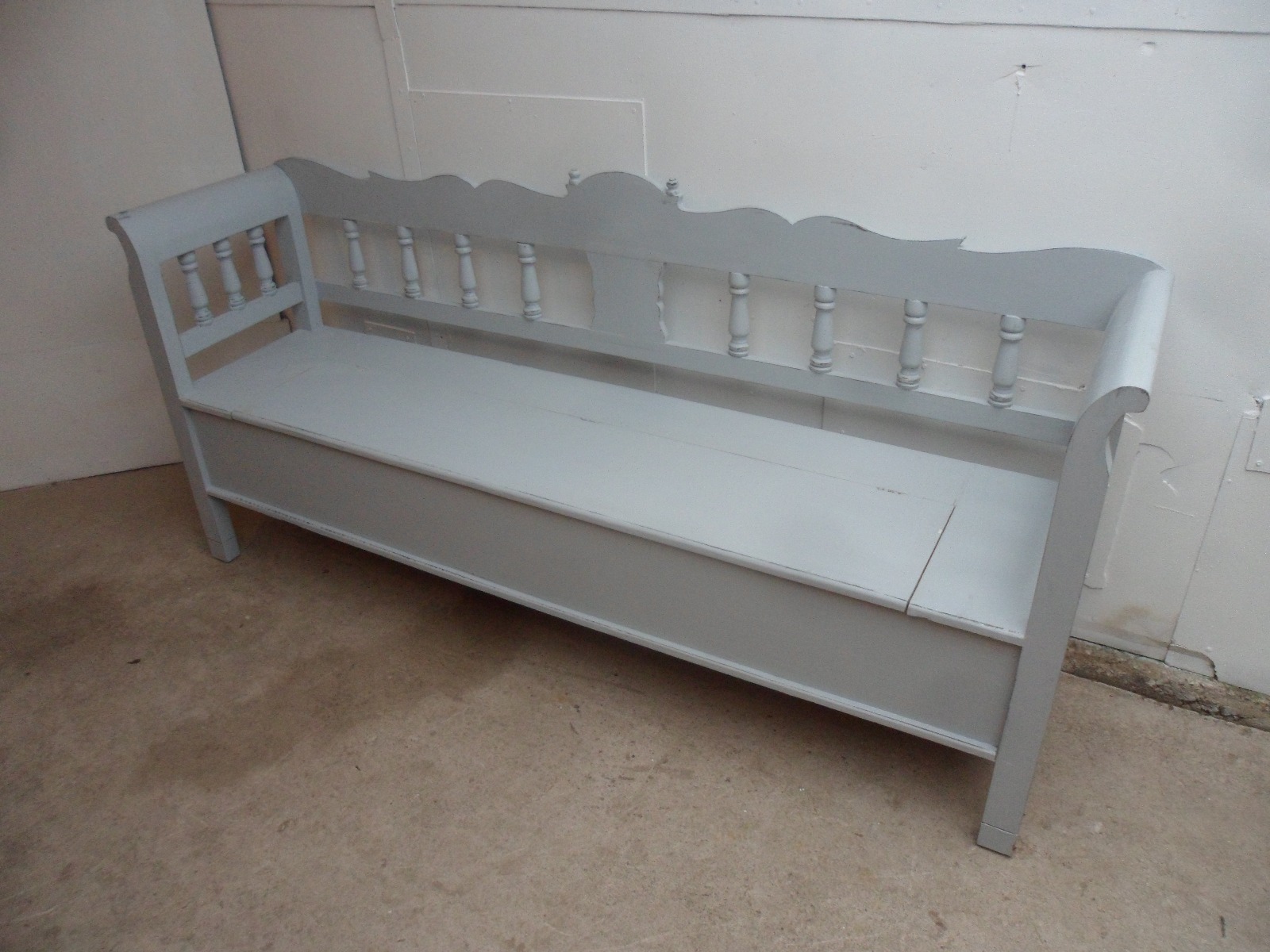 Really Pretty Old Pine Painted Light Grey Shabby Chic Box Settle / Bench
