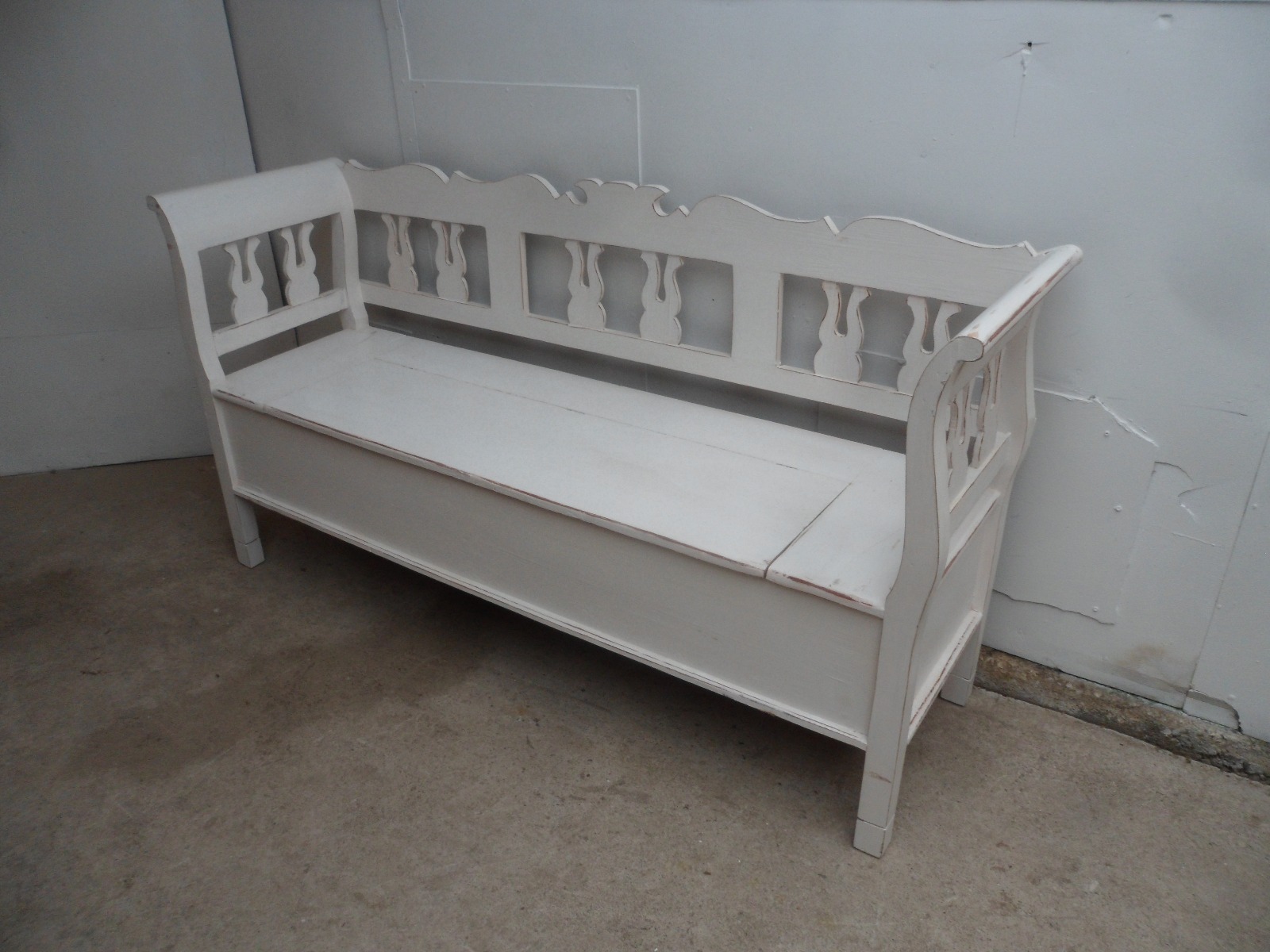 Really Pretty Old Pine Painted Small 2/3 Seater Box Settle / Bench