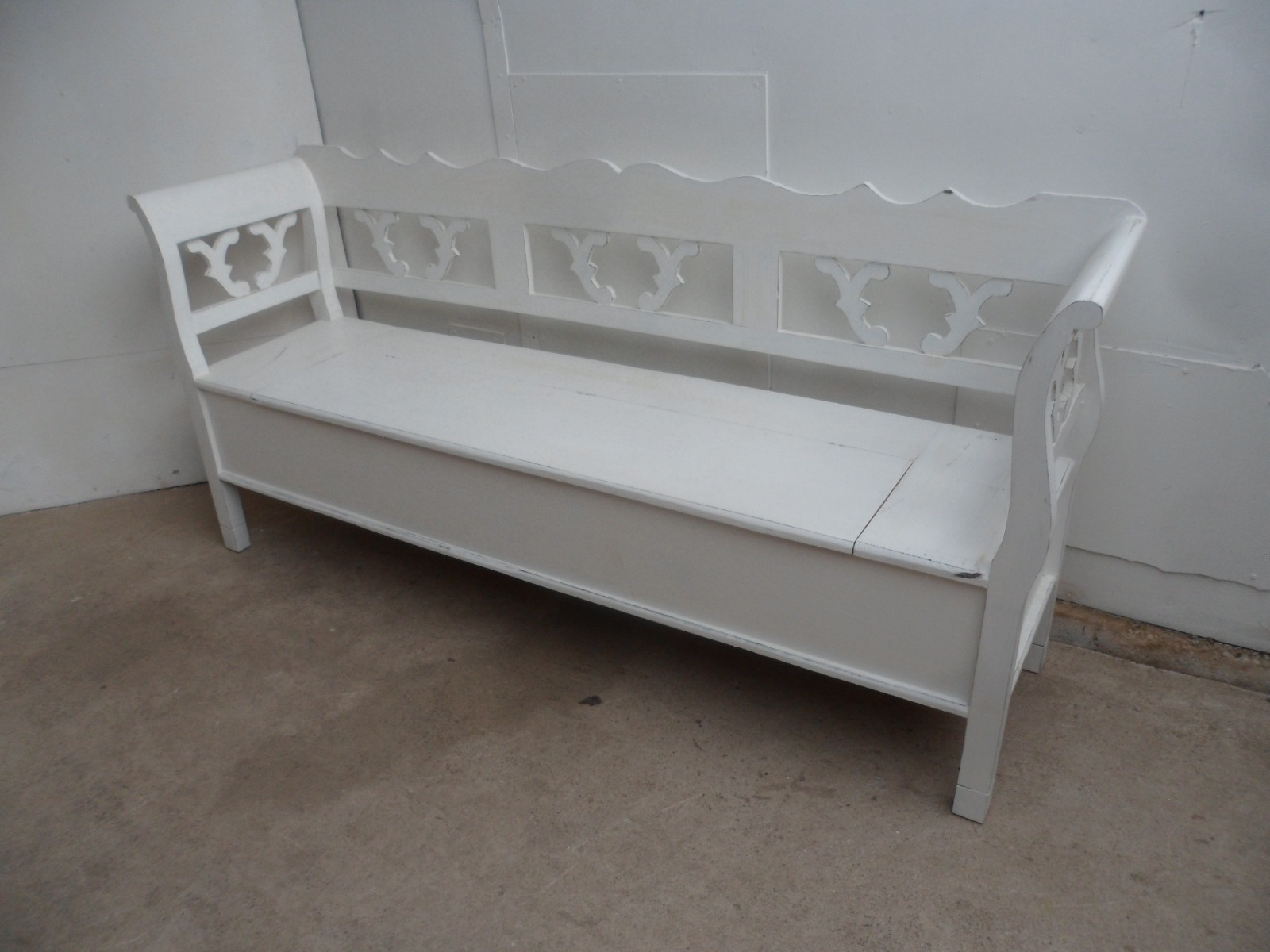 Really Pretty Painted White Shabby Chic 3/4 Seater Box Settle / Bench c.1920