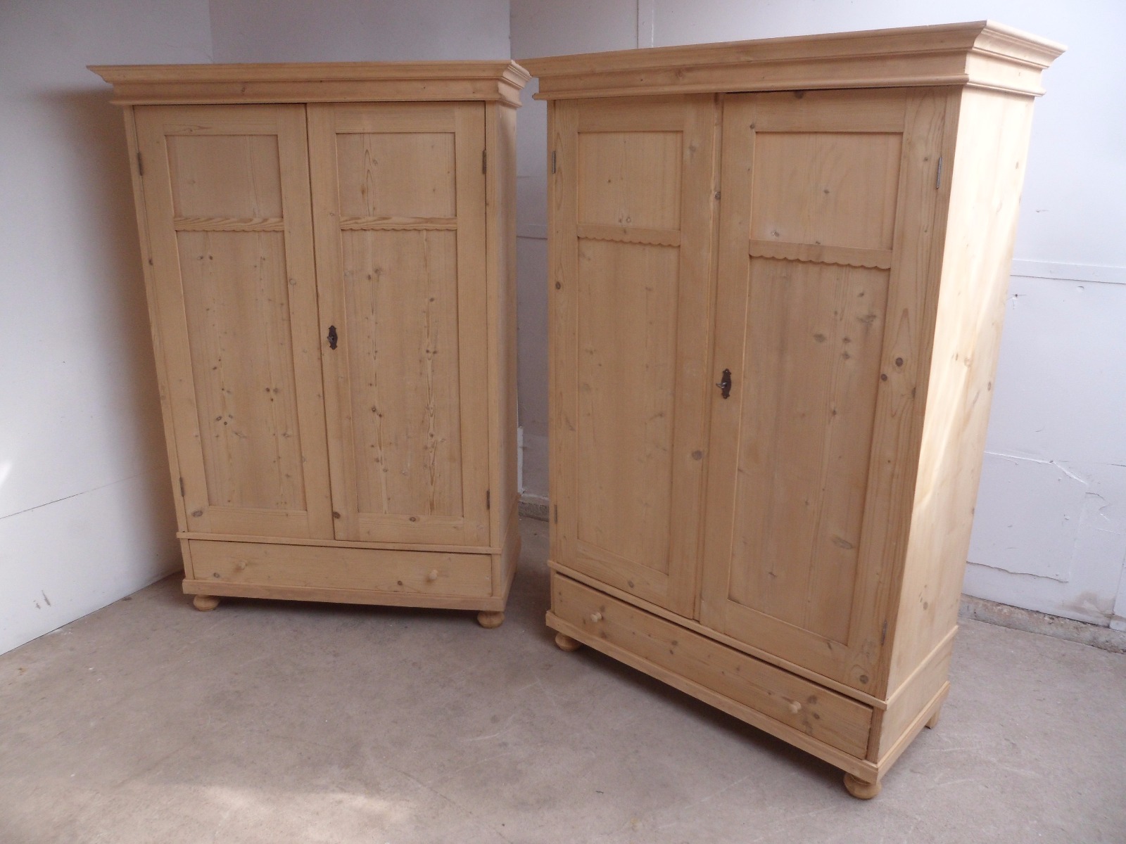 Really Pretty Pair of Antique Pine Flat Top Knockdown Wardrobes to Wax / Paint