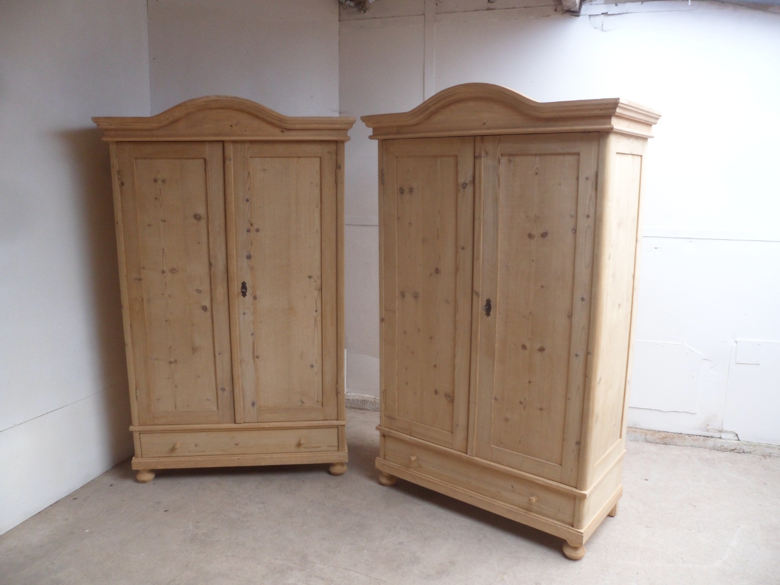 Really Pretty Pair of Pine Arch Top Panelled Knockdown Wardrobes c.1920