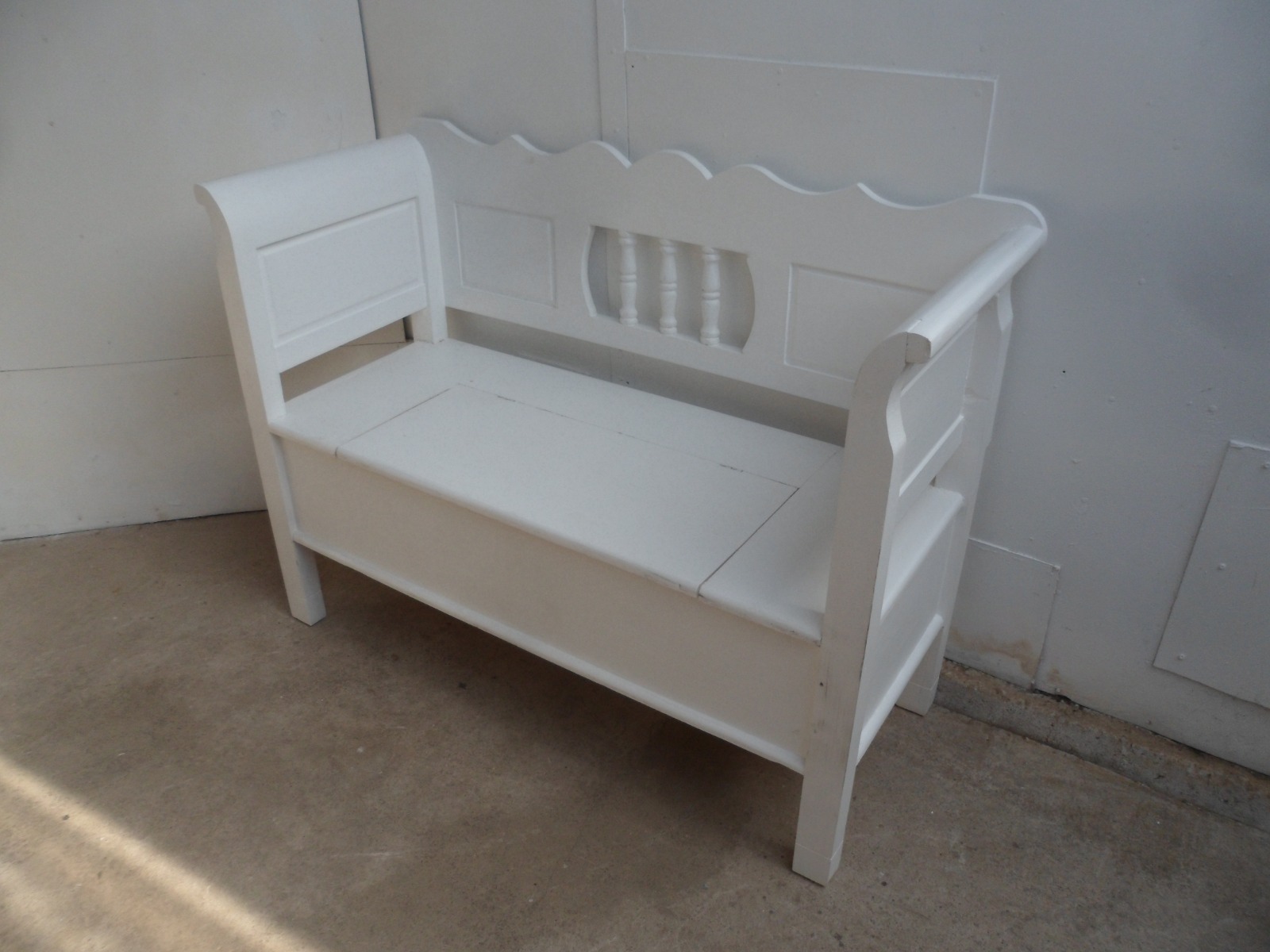 Really Pretty Panelled Small 2 Seater Painted Shabby Chic Box Settle / Bench