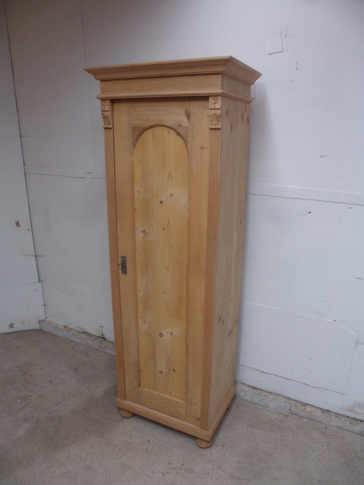 Really Pretty Tall Thin Arch Top 1 Door Pine Shoe Cupboard to wax / paint c.1920