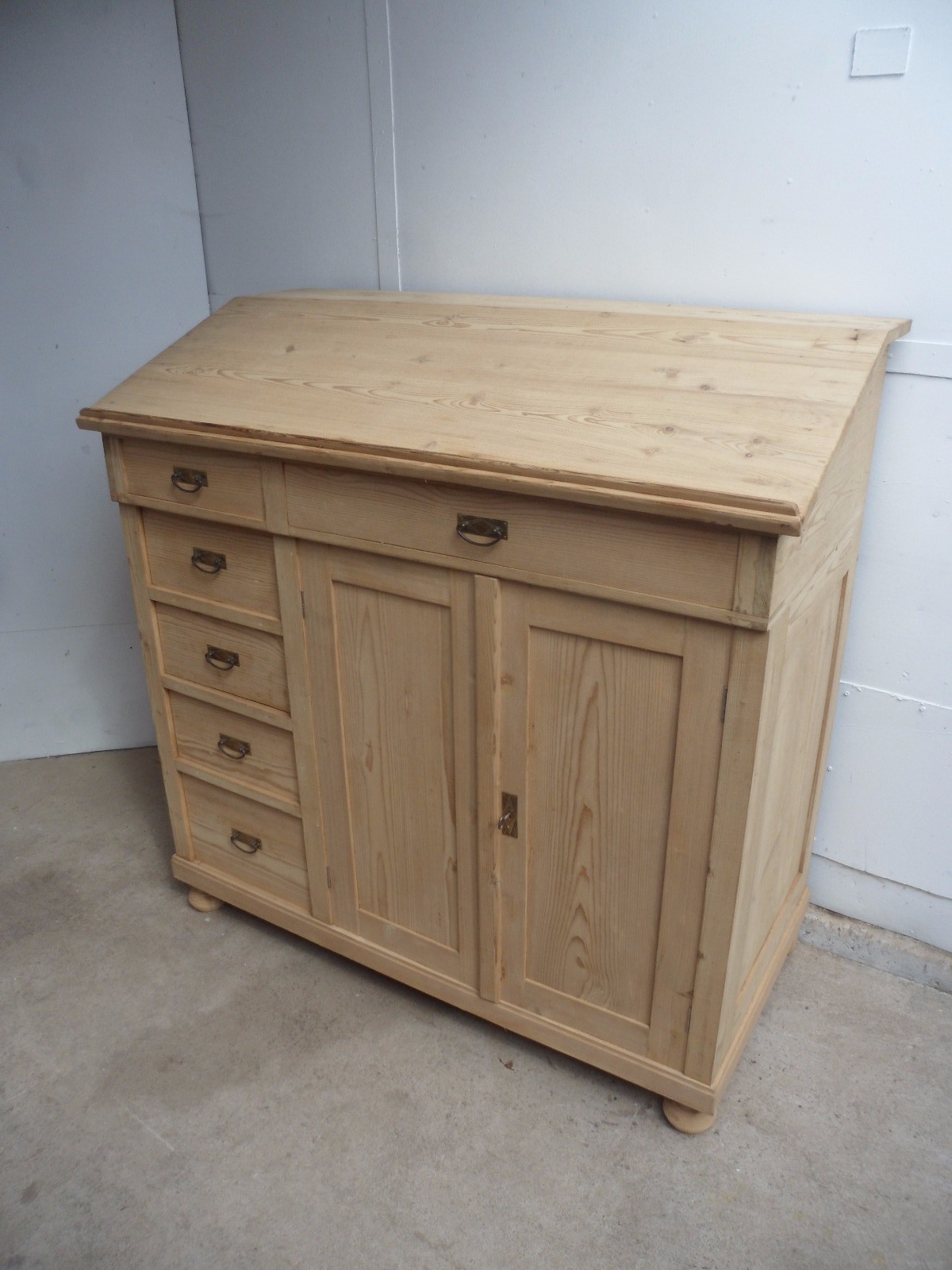 Really Rare Late Victorian Antique Pine Standing Bureau / Desk