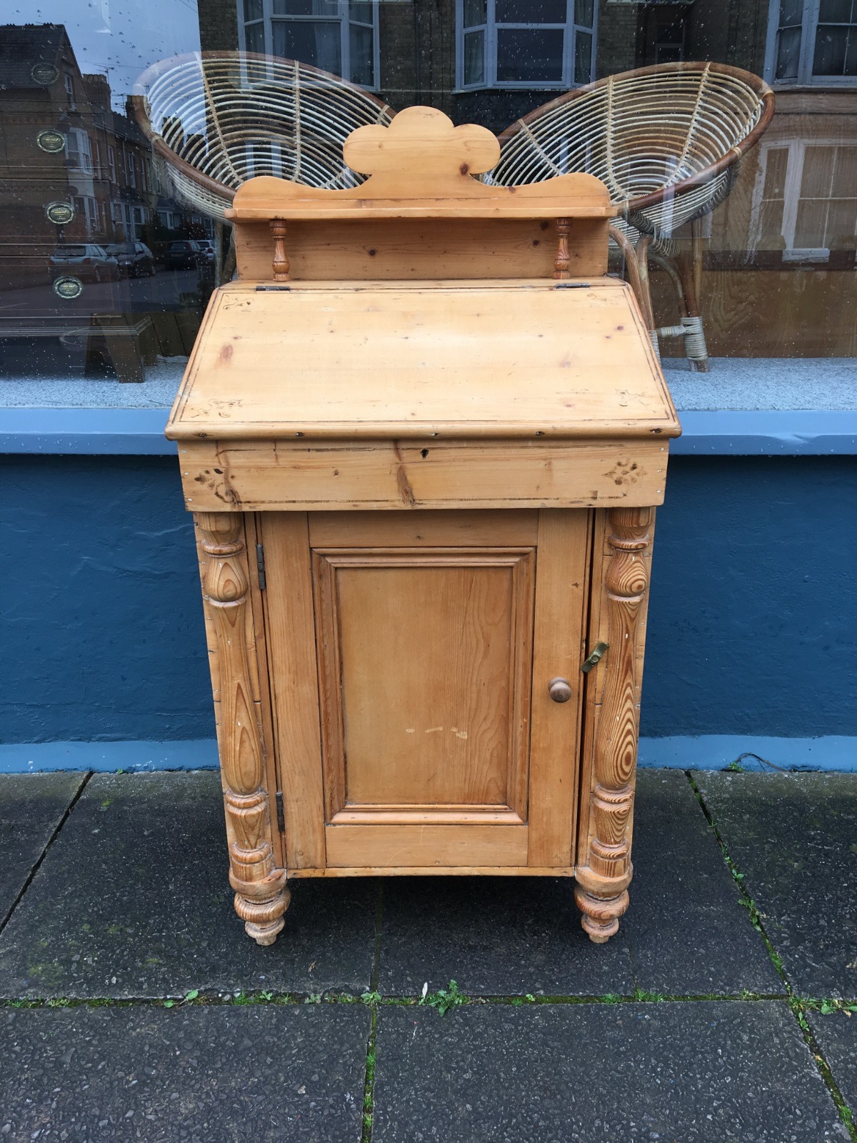 Reclaimed Antique Pine Davenport - Desk with Cupboard & Drawers