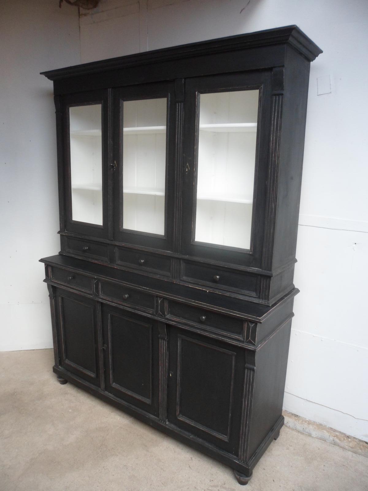 Reclaimed Pine Painted Black / White 6 Door 6 Drawer Kitchen Dresser / Bookcase
