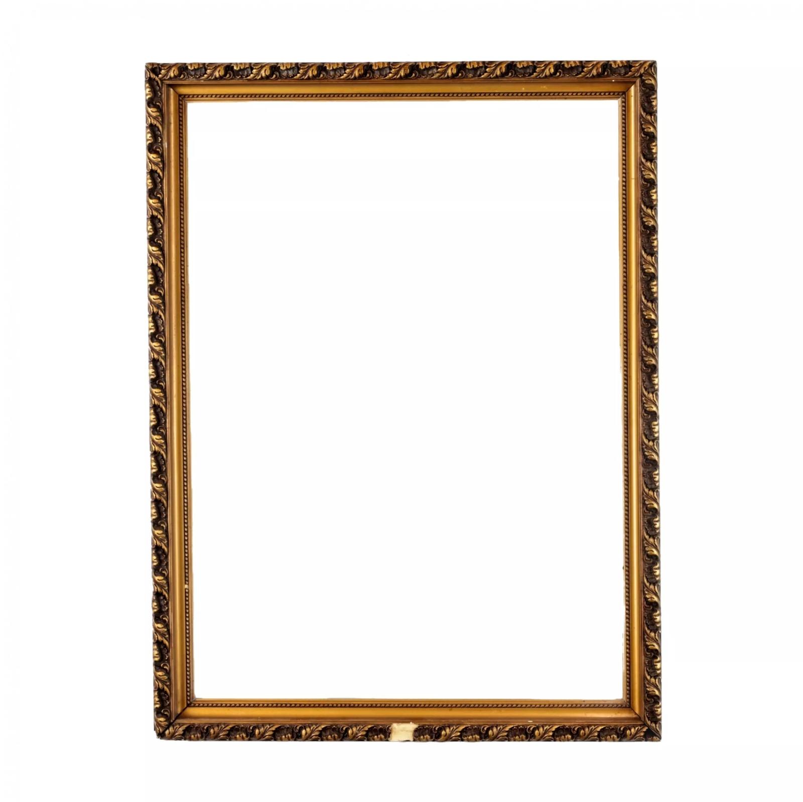Rectangular wooden frame with twisted bronze floral ornament along the edging.