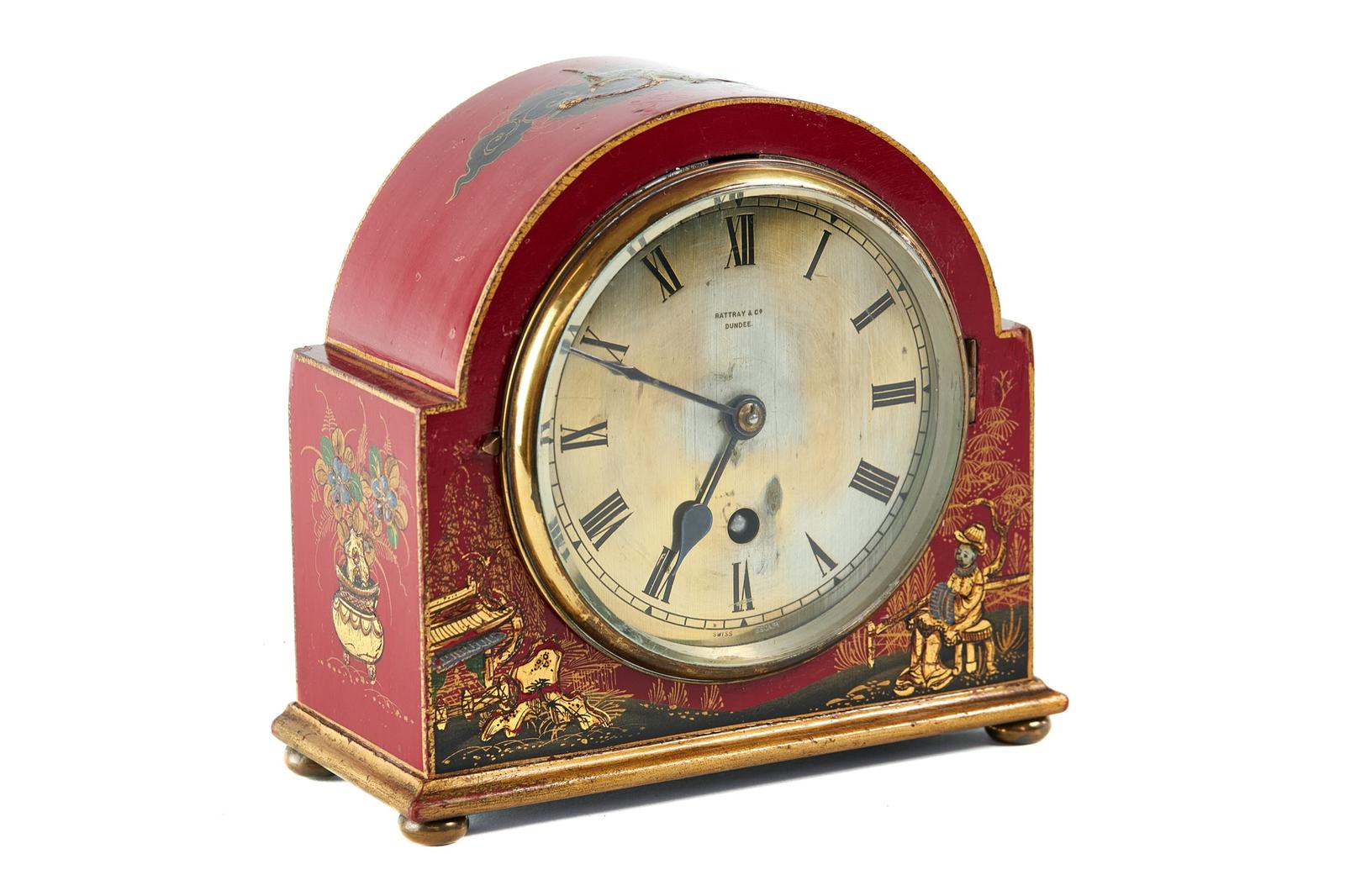 Red Chinoiserie Decorated Mantel Clock c.1920 (1 of 6)