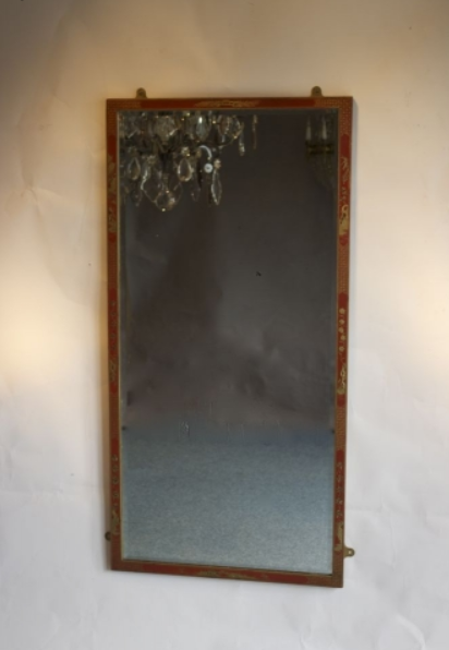 Red Chinoiserie Lacquered Wall Mirror c.1930