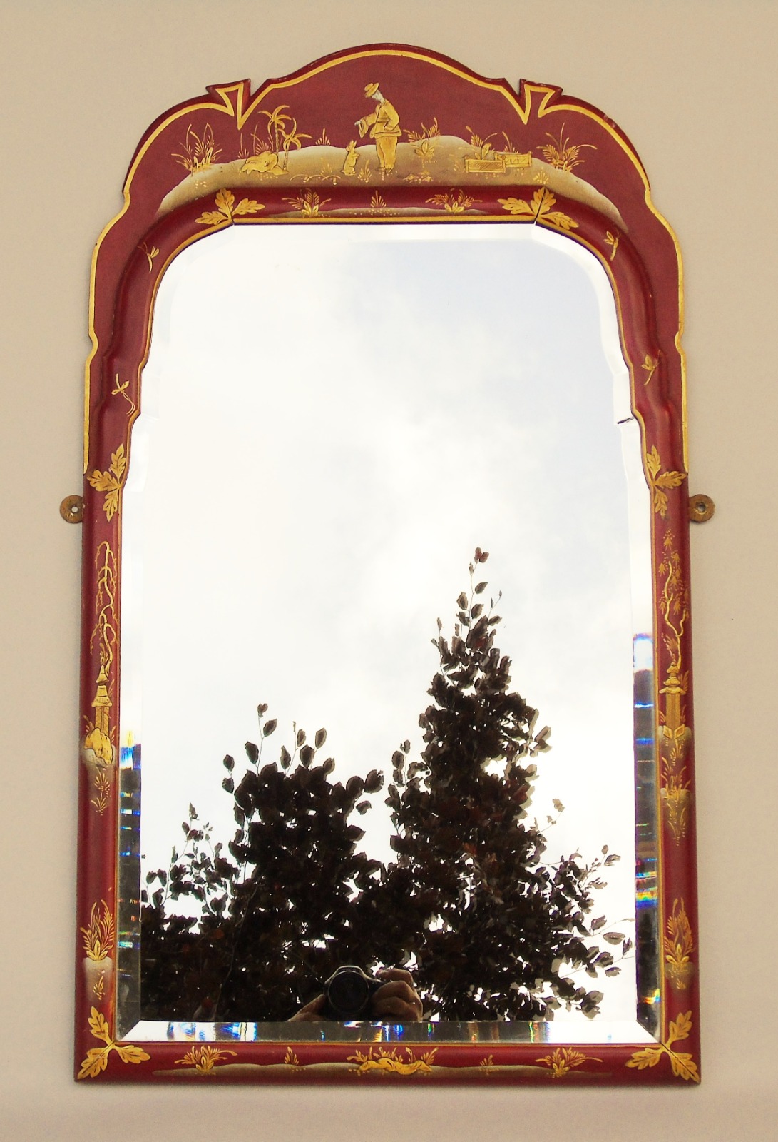 Red Lacquer Chinoiserie Mirror c.1920 (1 of 1)