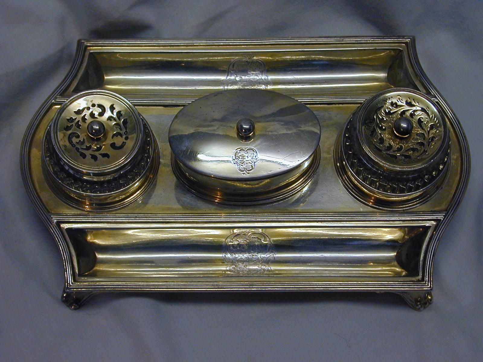 Refined Antique Sterling Silver Partners Inkstand