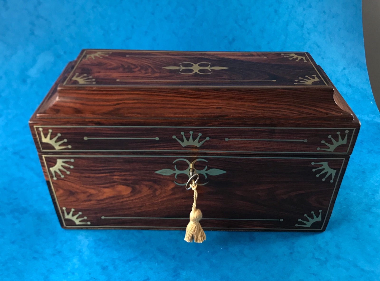 Regency 1815 Brass Inlaid Beautiful Kingwood Twin Canister Tea Caddy
