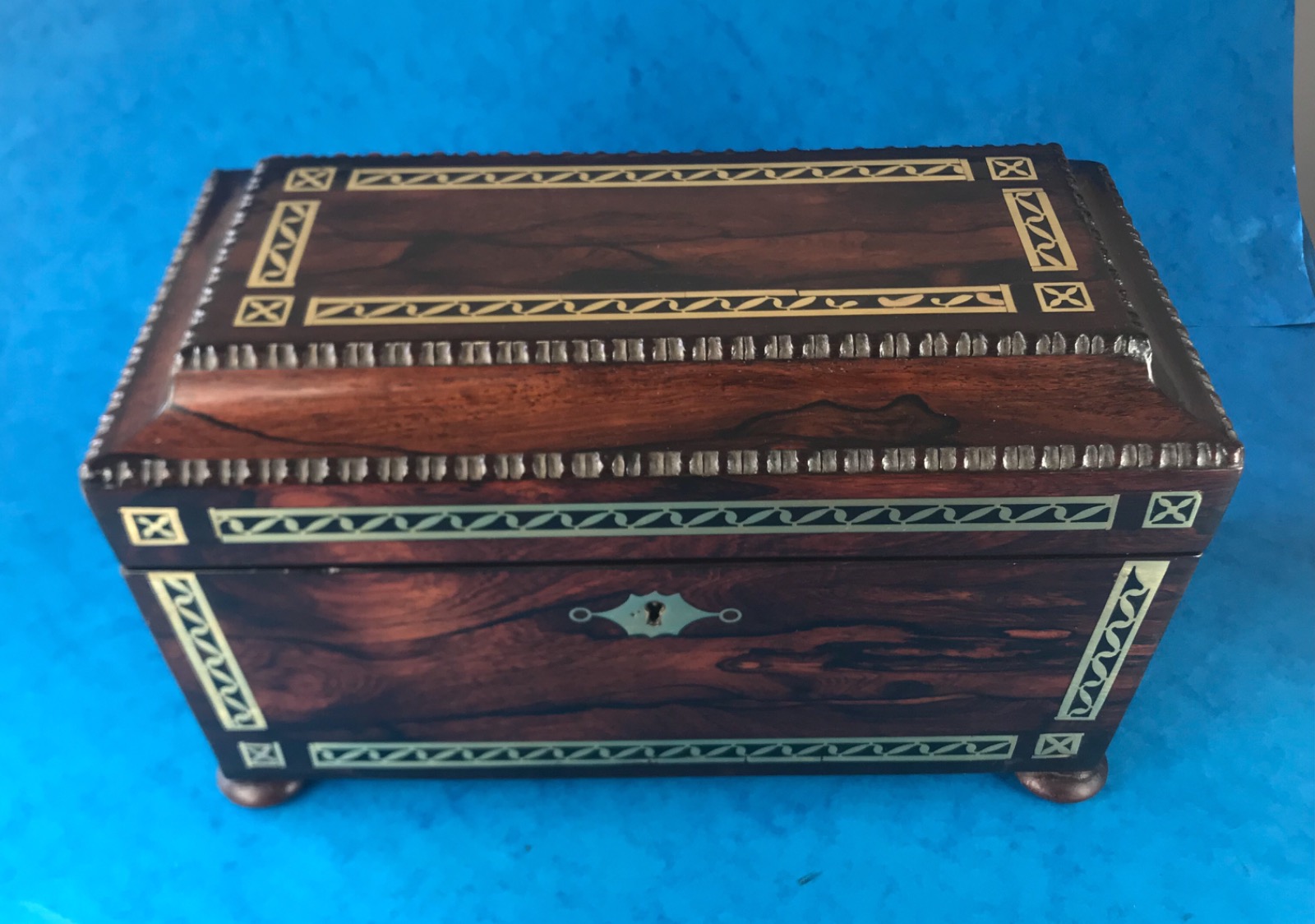 Regency 1820 Sarcophagus Brass Inlaid Rosewood Twin Canister Tea Caddy