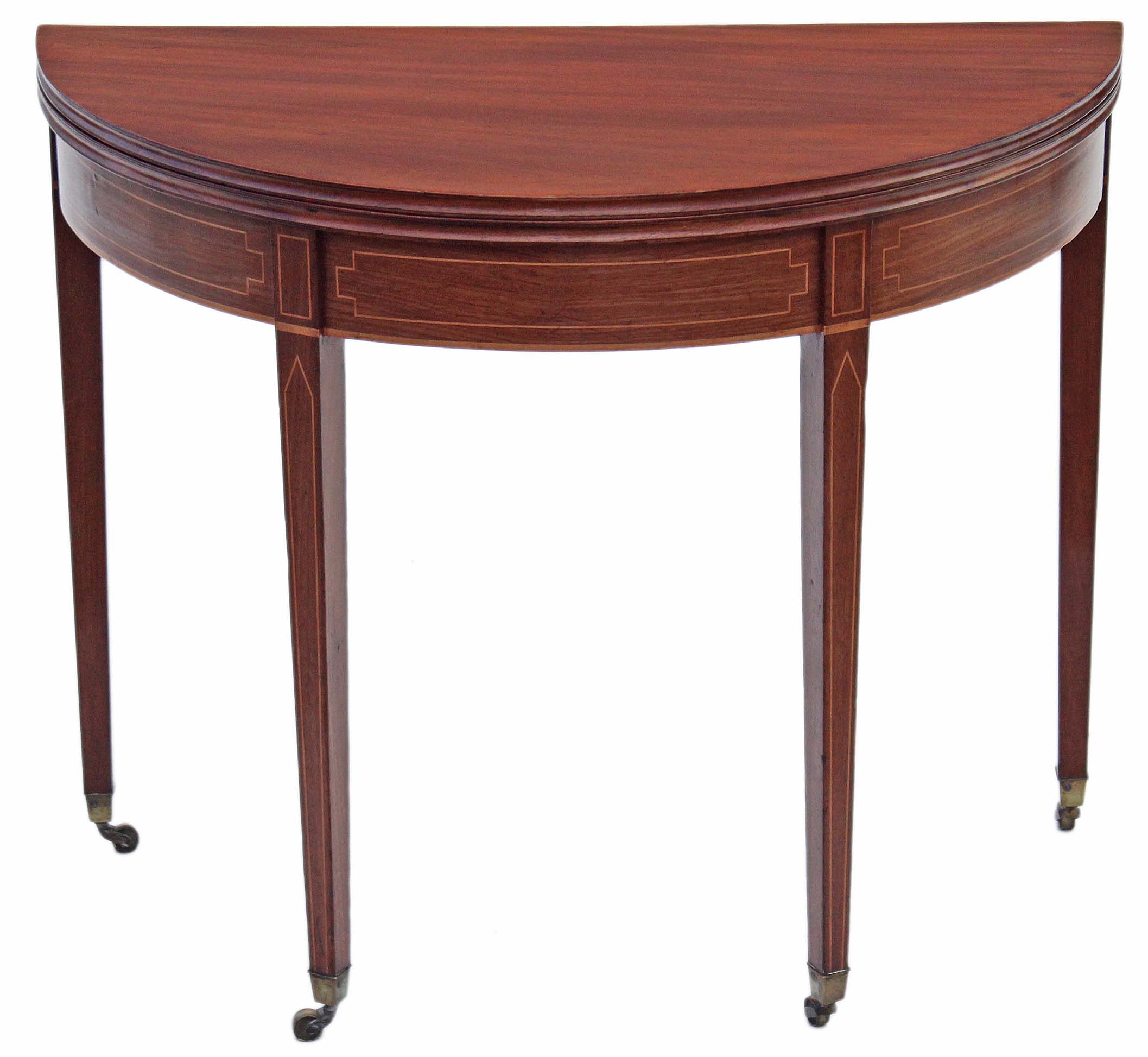 Regency 19C inlaid mahogany folding card tea console table demi-lune