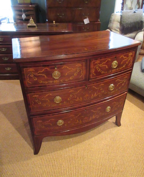 Regency Antique Inlaid Bow Front Chest