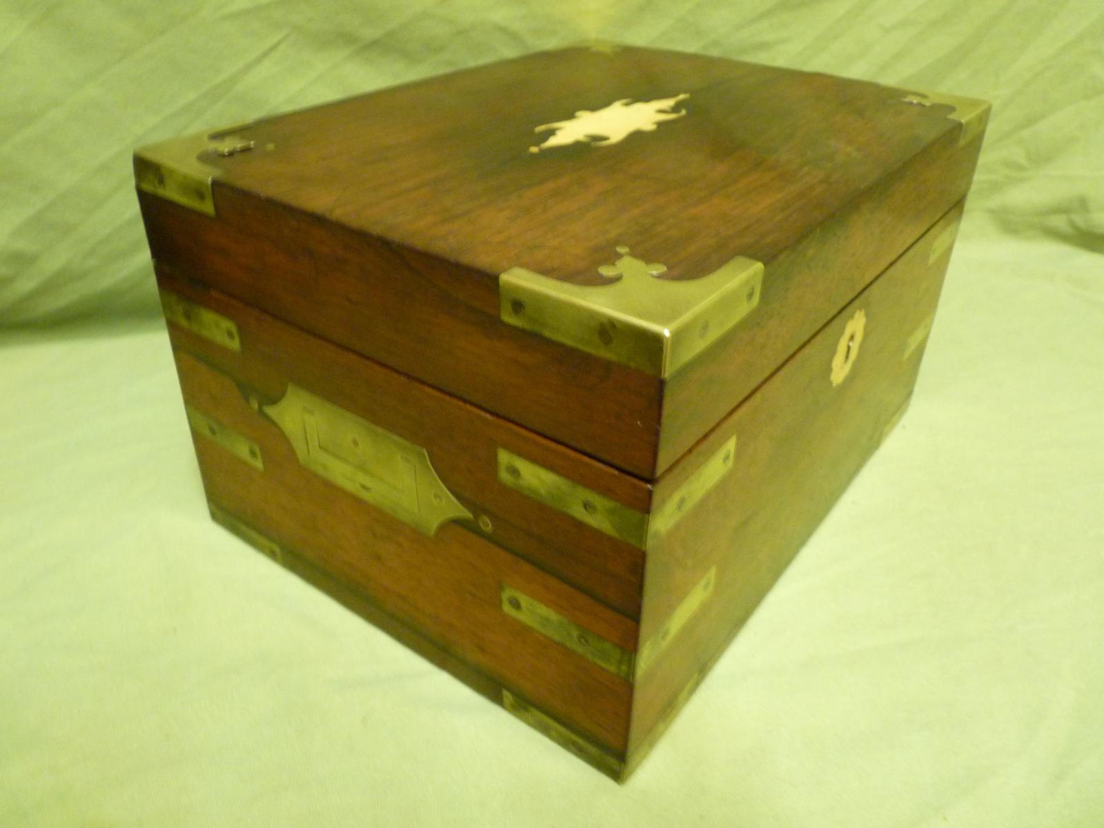 Regency Brass Bound Rosewood Jewellery Box with Side Drawer c.1830