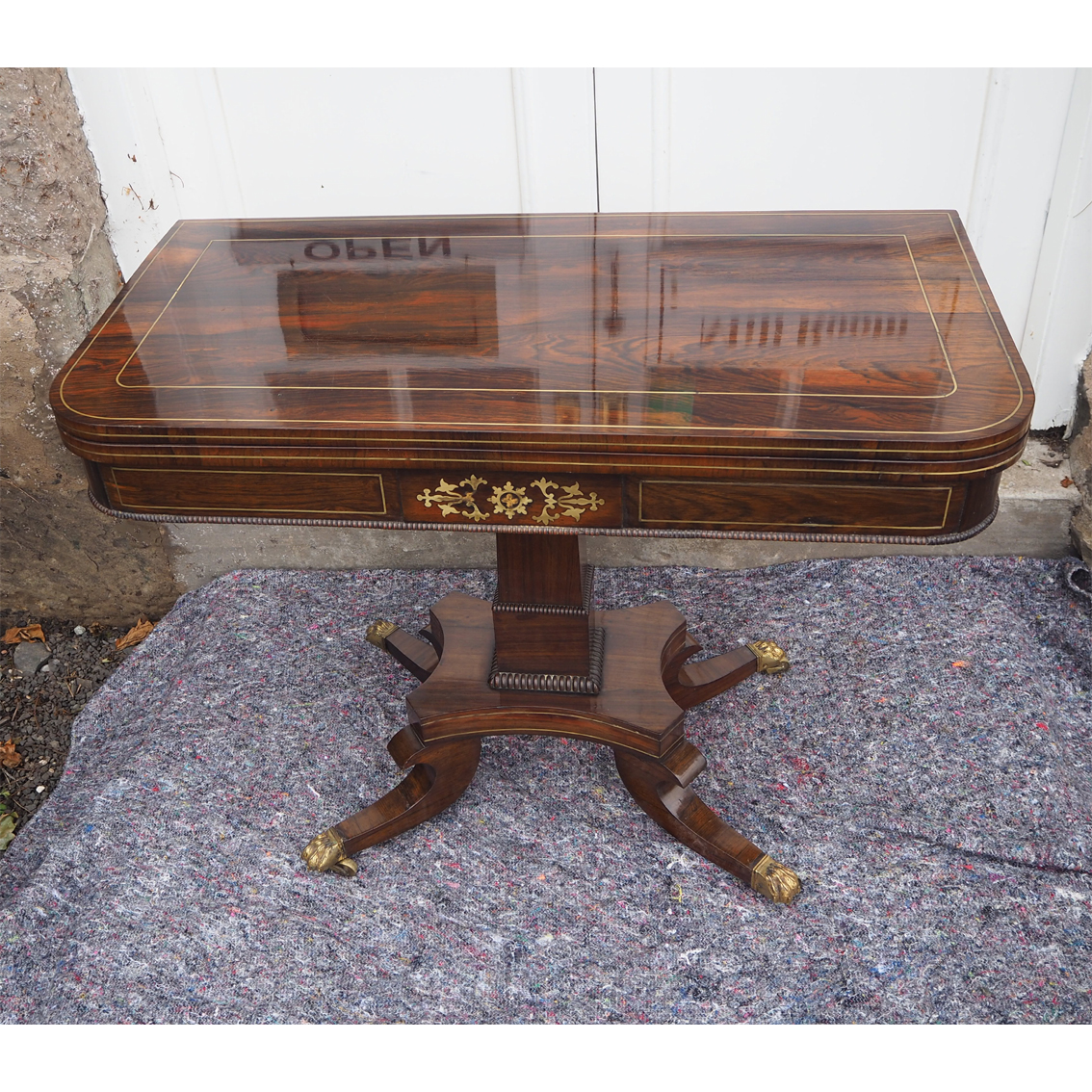 Regency Brass Inlaid Rosewood Card Tbale (1 of 9)