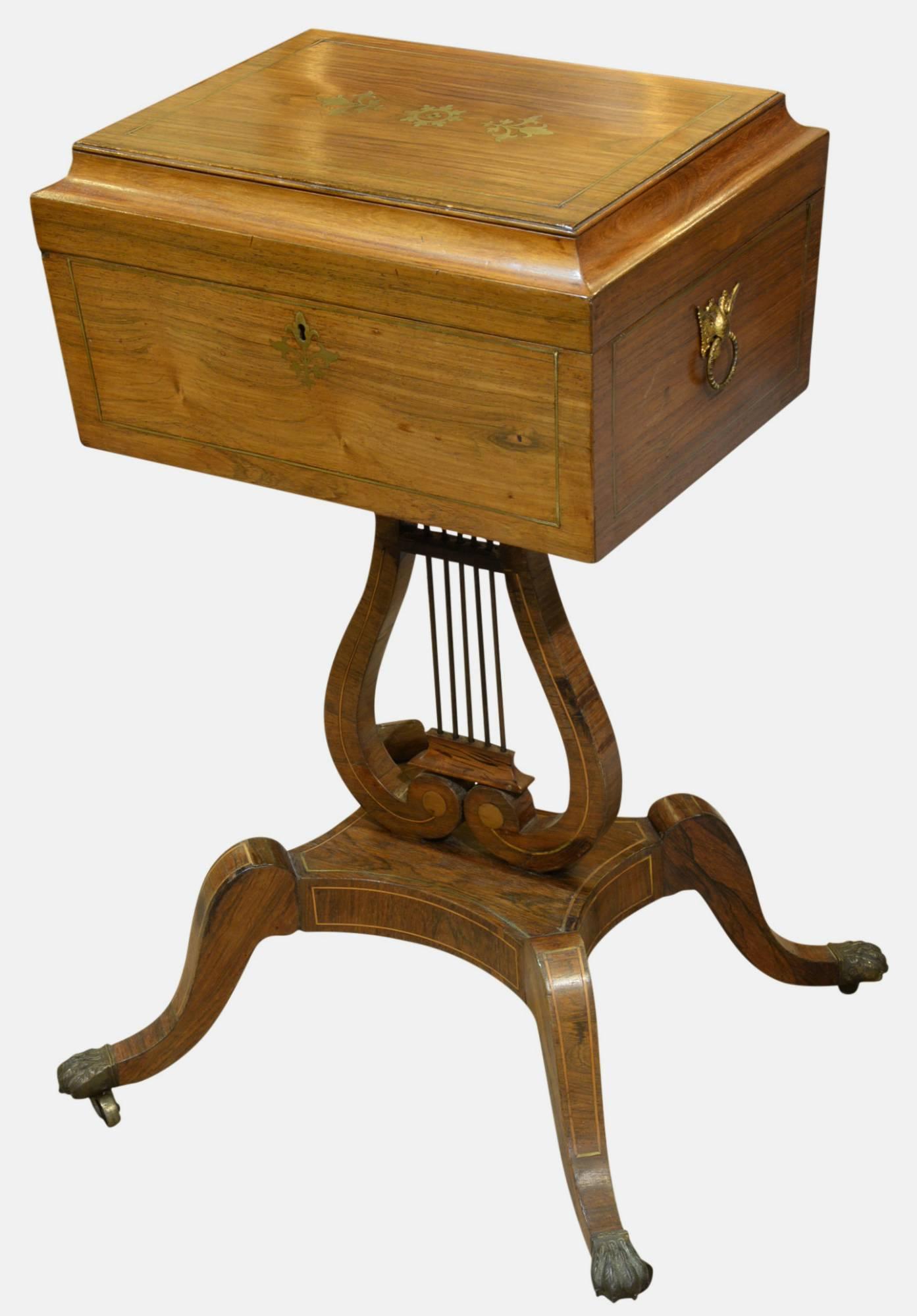 Regency Brass Inlaid Teapoy / Tea Caddy c.1815