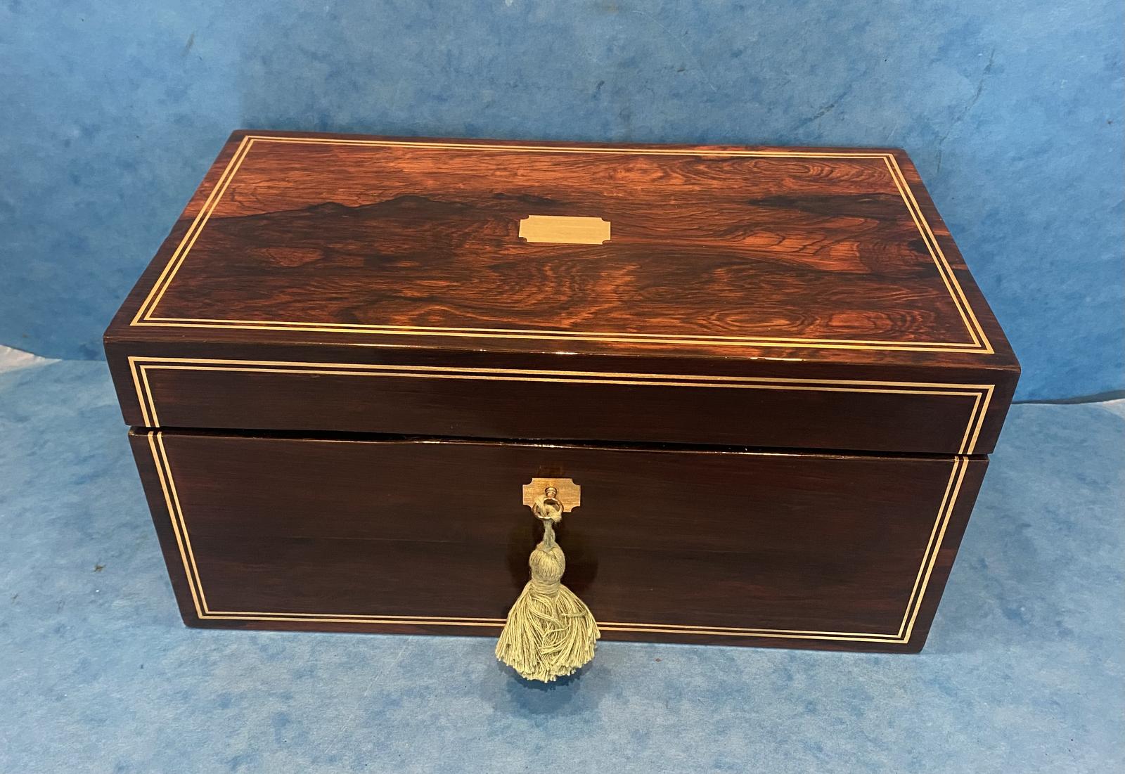 Regency Brazilian Rosewood Brass Inlaid Tea Caddy