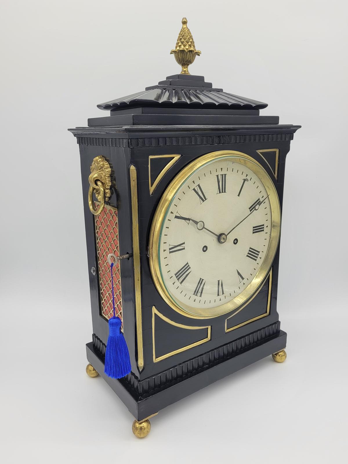Regency Ebonised English Chamfer Top Striking Bracket / Table Clock