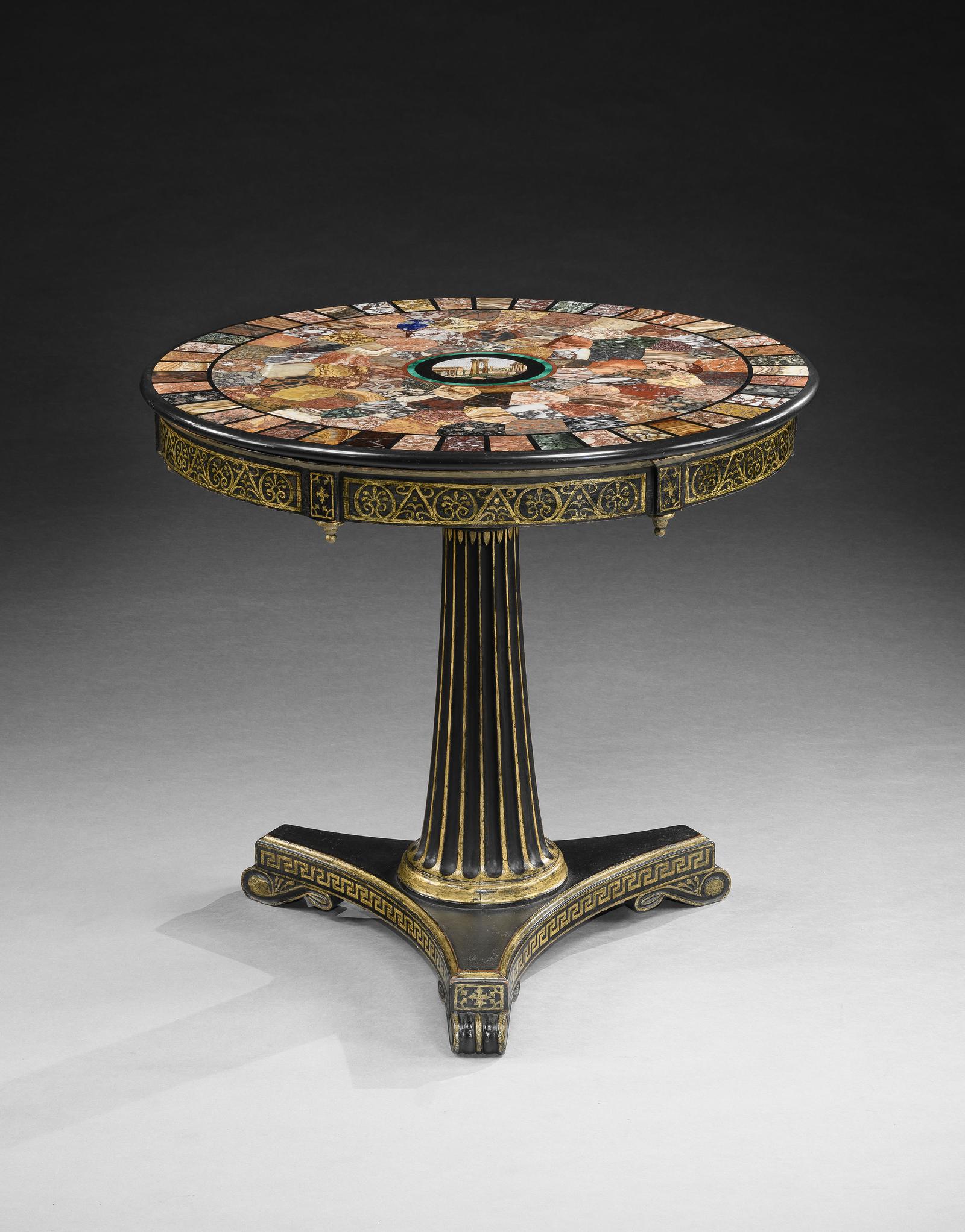Regency Gilt & Ebonised Table with Specimen Marble Top