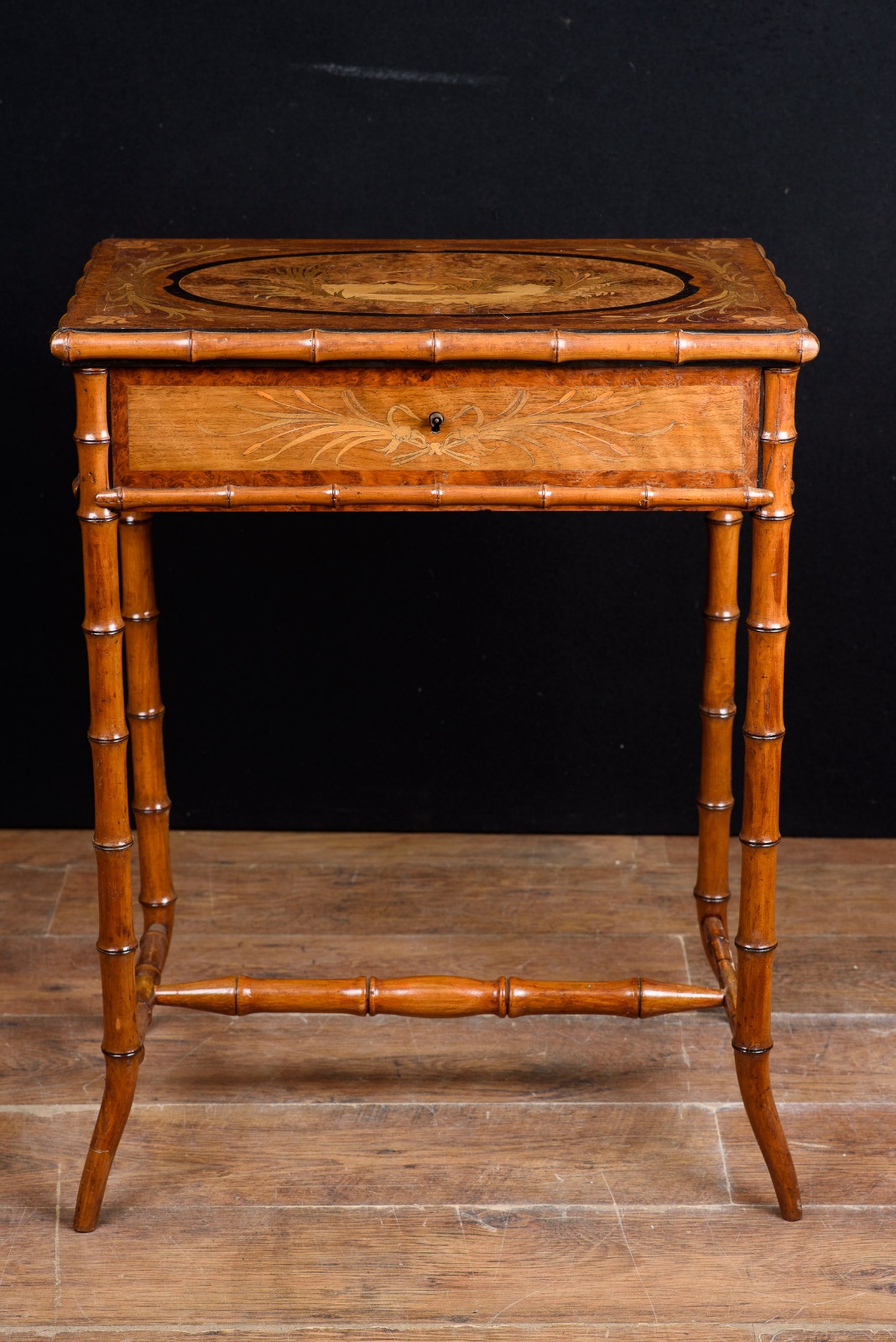 Regency Jewellery Box Table Bamboo Legs Inlay