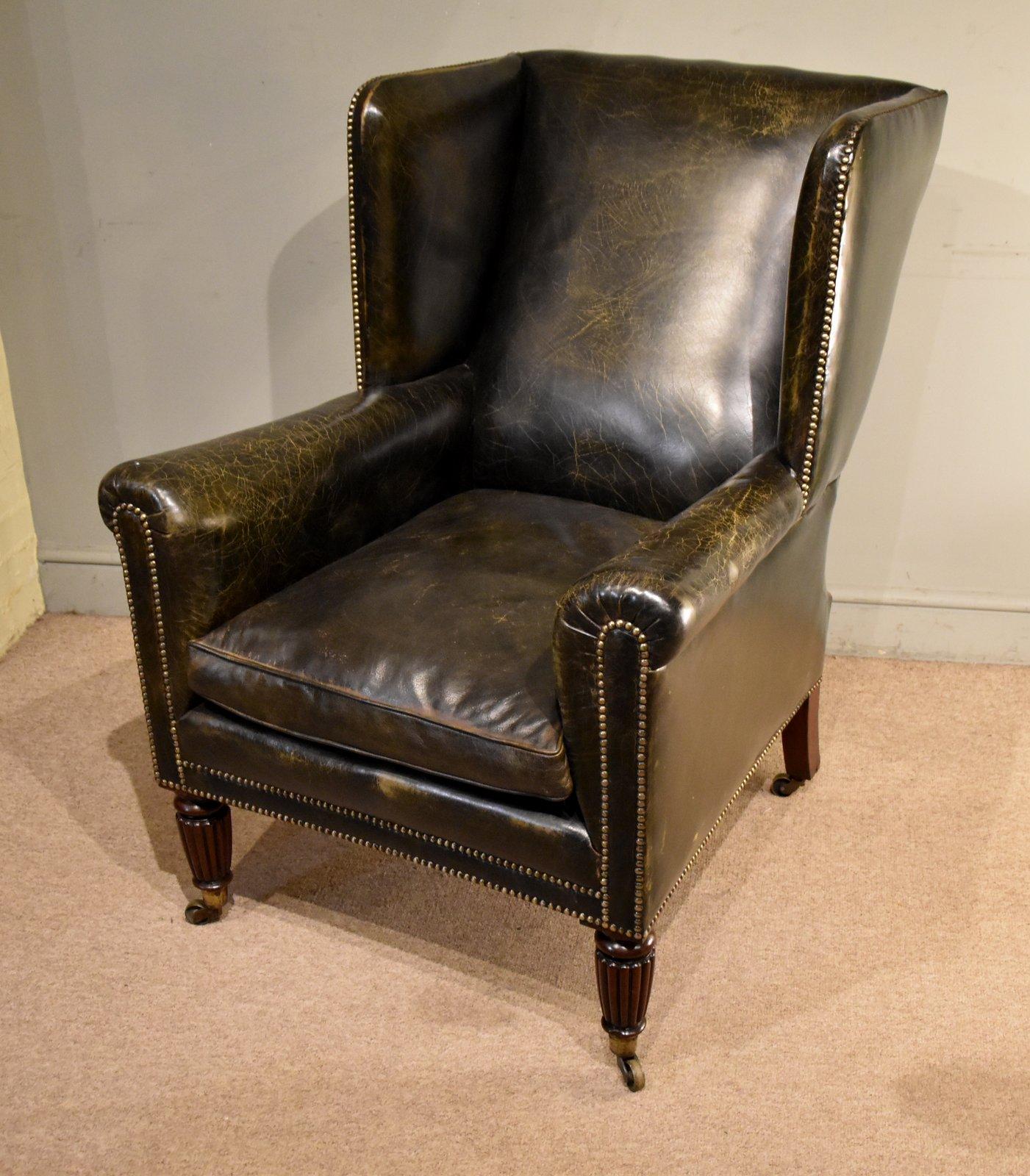 Regency Late Regency Library Armchair Black Leather (1 of 7)