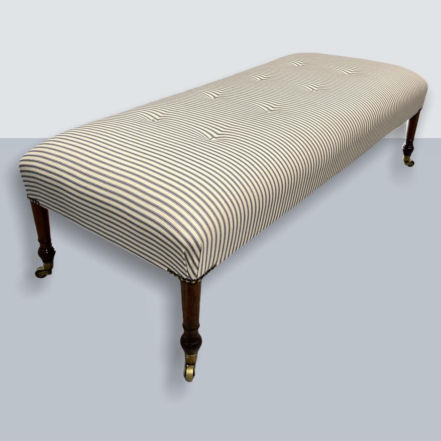 Regency Low Footstool in Buttoned Ticking (1 of 4)