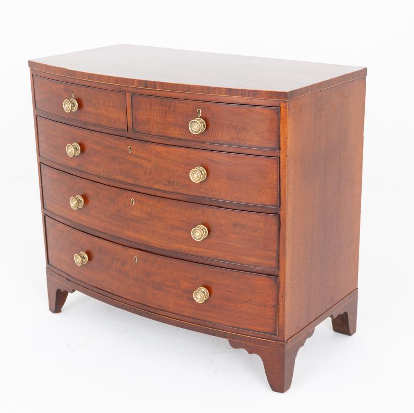 This Regency Mahogany Bow Chest of Drawers is located in Norfolk, United Kingdom