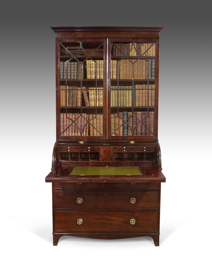 Regency Mahogany Cylinder Bureau Bookcase