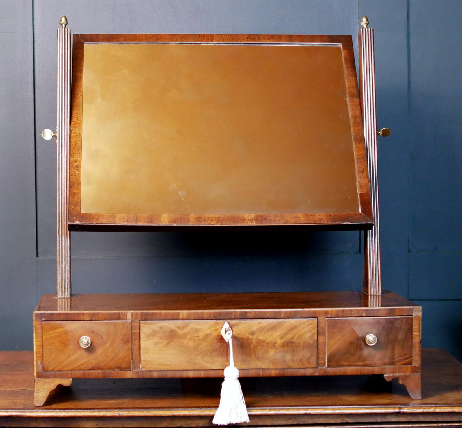 Infuse your dressing suite with the refined architectural grace of the British Regency period. This mahogany tabletop mirror is a masterclass in early 19th-century symmetry and restrained luxury, perfectly preserved to bring historical character to a modern interior.
