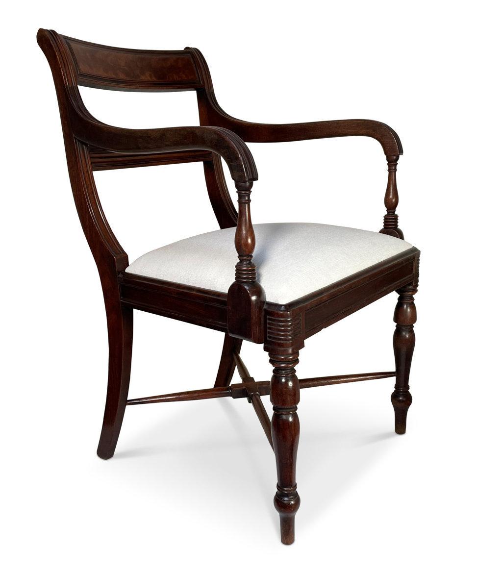 Regency Mahogany Elbow Chair with Upholstered Seat