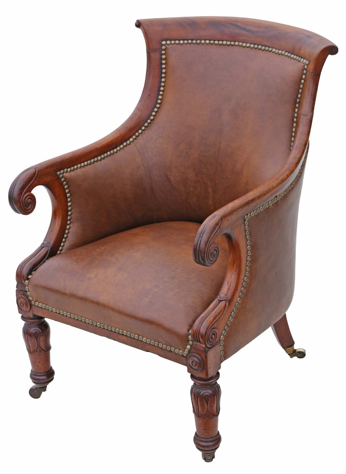 Regency Mahogany Leather Library Armchair Chair