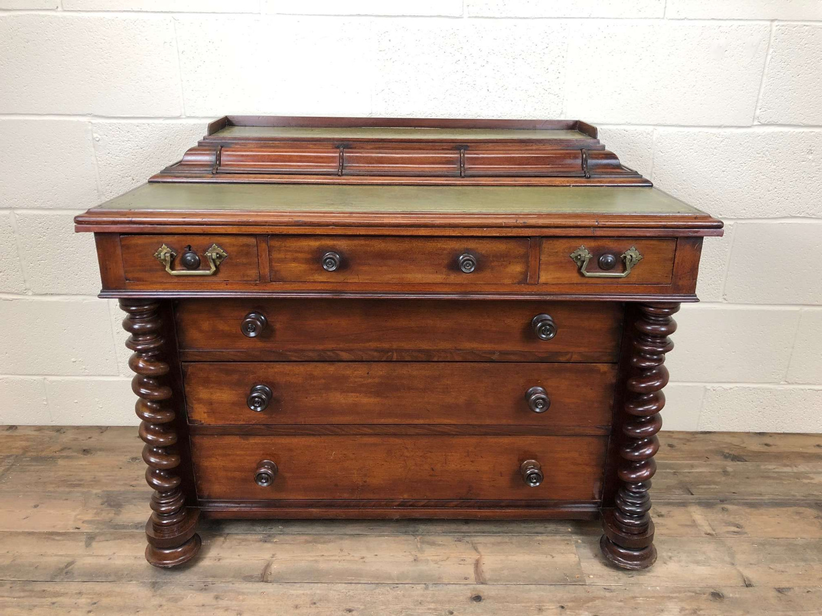 Regency Mahogany Writing Desk with Green Leather Top