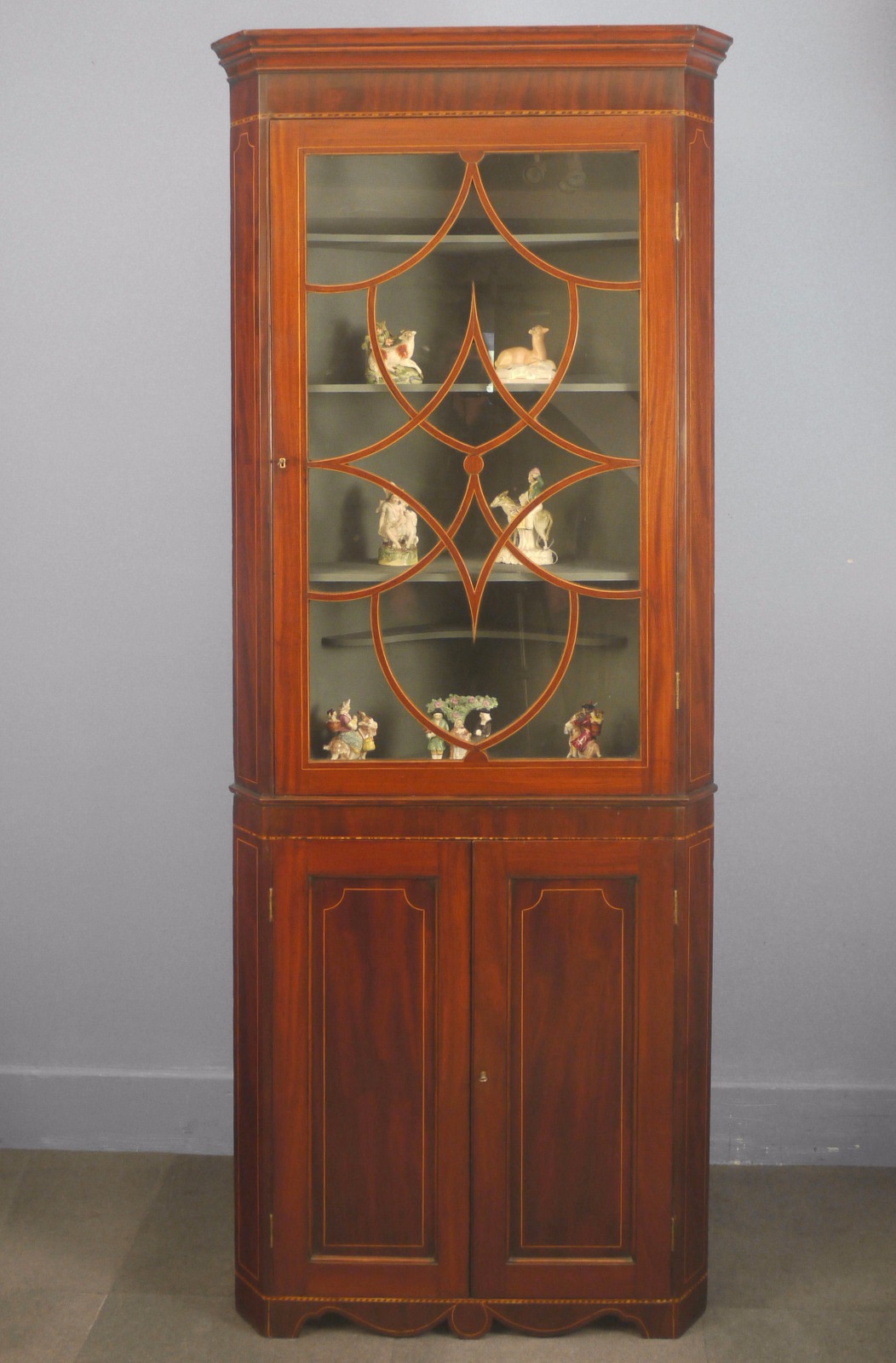 Regency Period Mahogany Glazed Door Standing Corner Cabinet