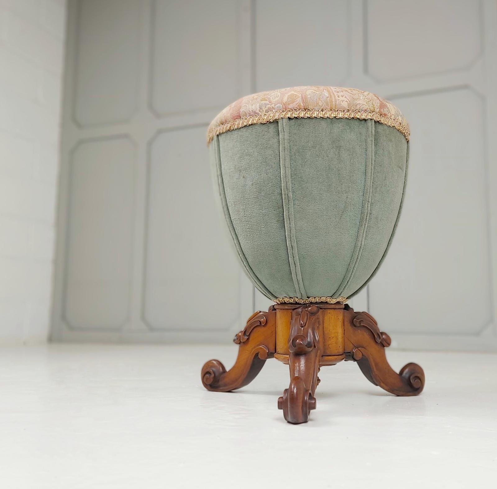 Regency Period Upholstered Stool on Scrolled Feet