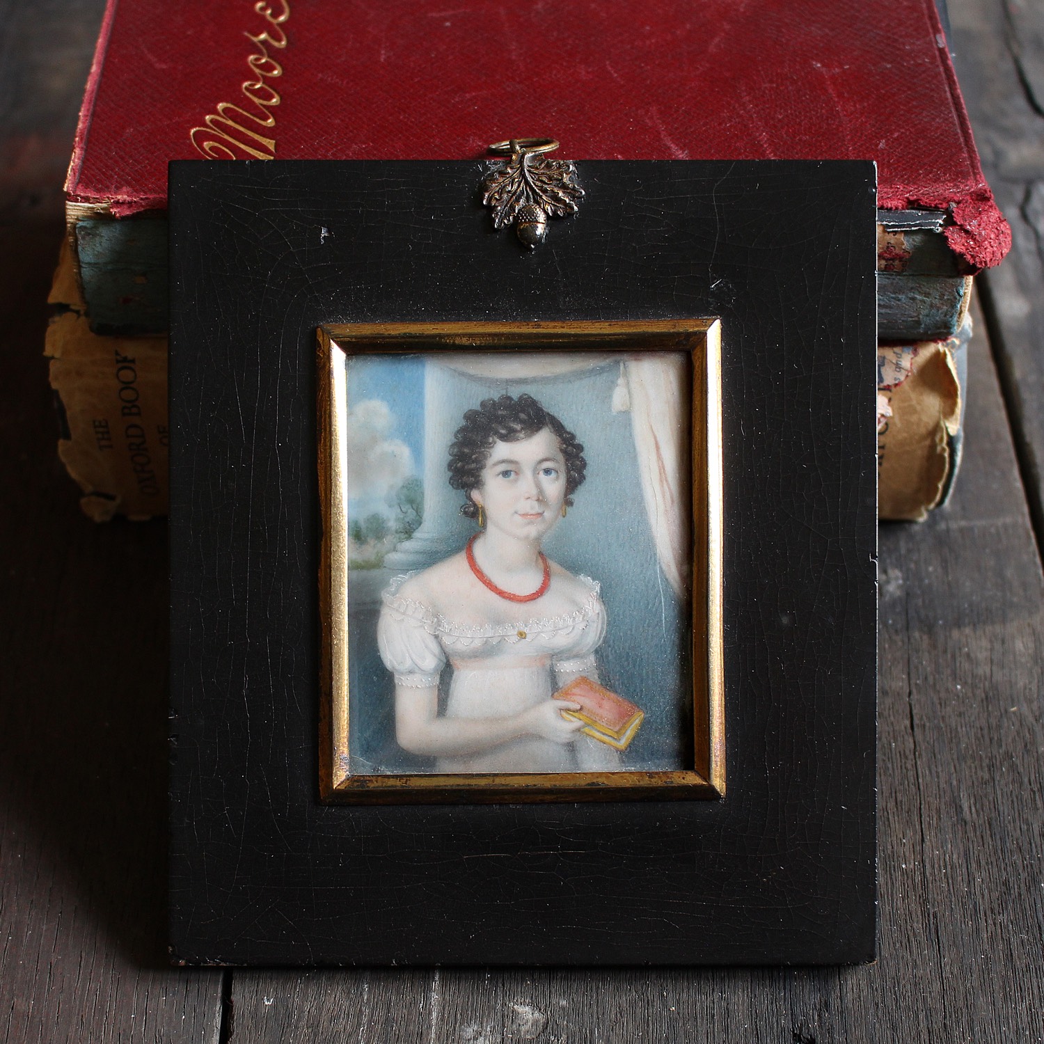 Regency Portrait Miniature of a Lady with a Coral Necklace, Antique Painting, English, British