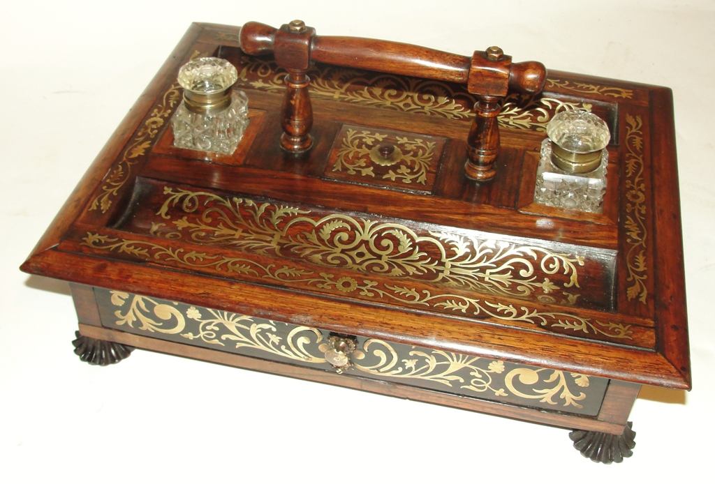 Regency Rosewood and Brass Inlaid Inkstand c.1811