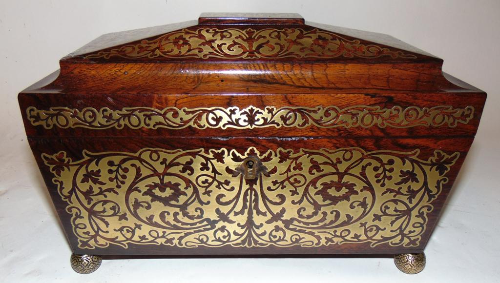 Regency Rosewood & Brass Inlaid Tea Caddy