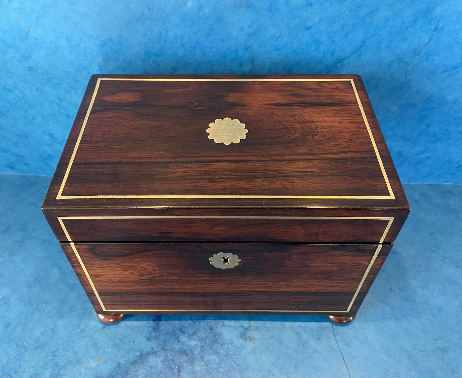 Regency Rosewood Brass Inlaid Tea Caddy