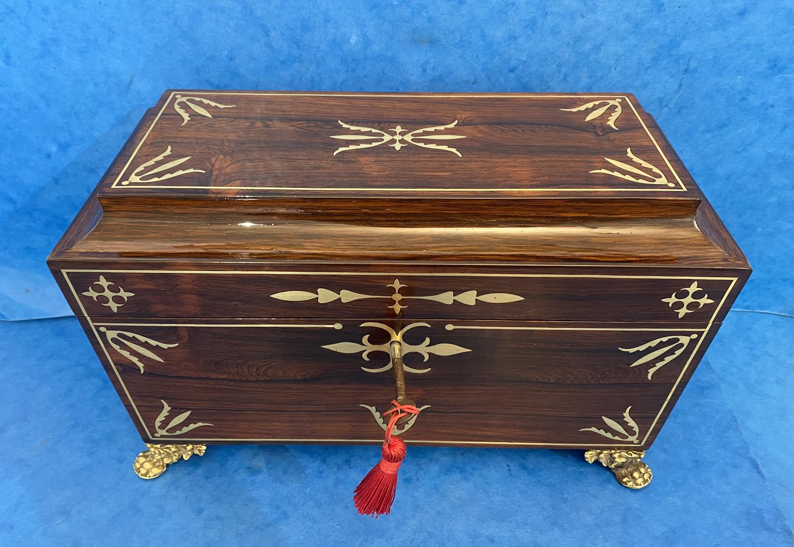 Regency Rosewood Brass Inlaid Twin Canister Tea Caddy