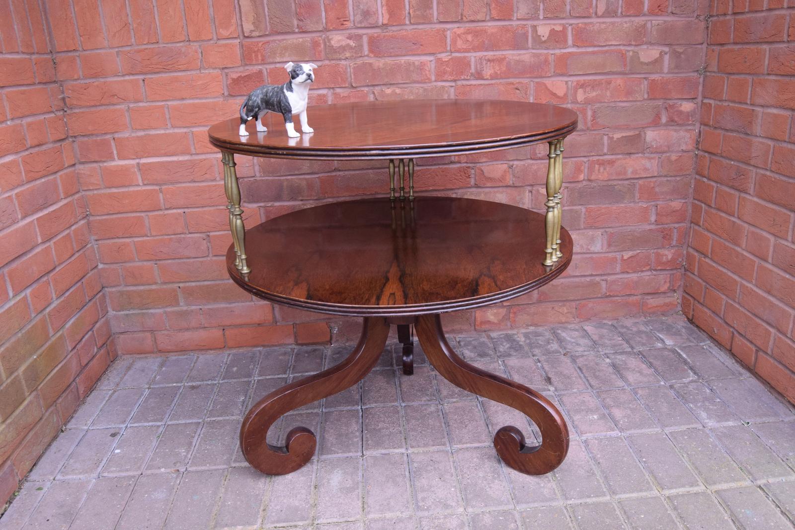 Regency Rosewood Two Tier Table / Dumbwaiter with Brass Standards