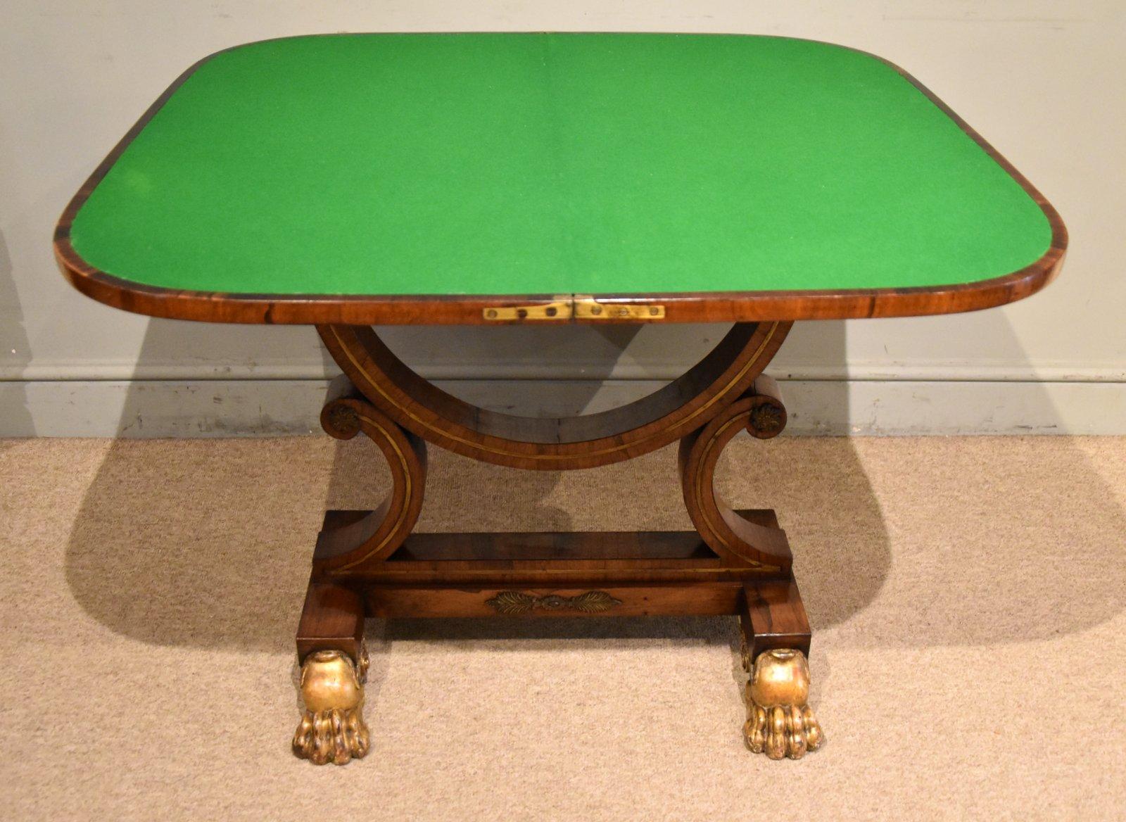 Regency Rosewood Veneered Brass Inlaid Card Table