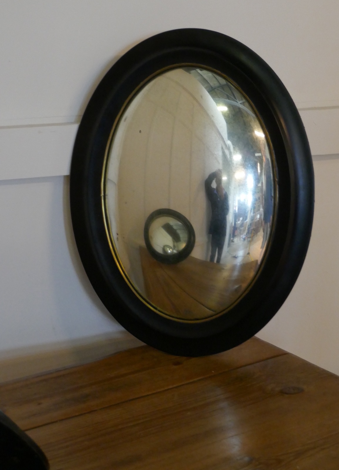 Regency Style Ebonised Convex Oval Wall Mirror c.1900