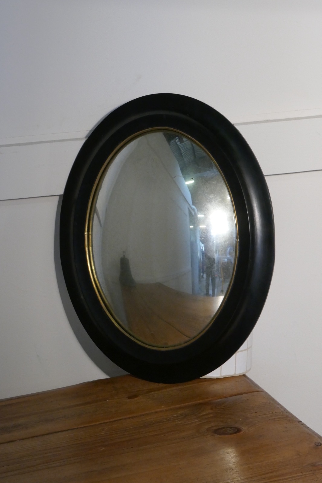 Regency Style Ebonised Convex Oval Wall Mirror c.1900