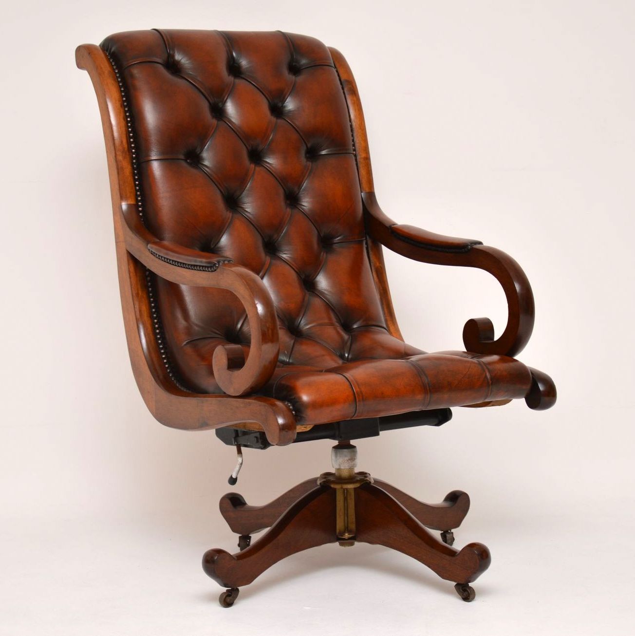 Regency Style Leather & Mahogany Swivel Desk Chair c.1950