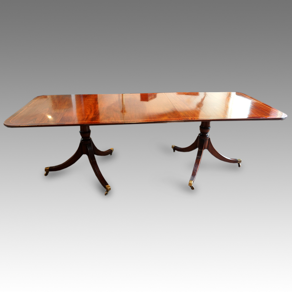 Regency Style Mahogany Cross-Banded Twin Pillar Dining Table