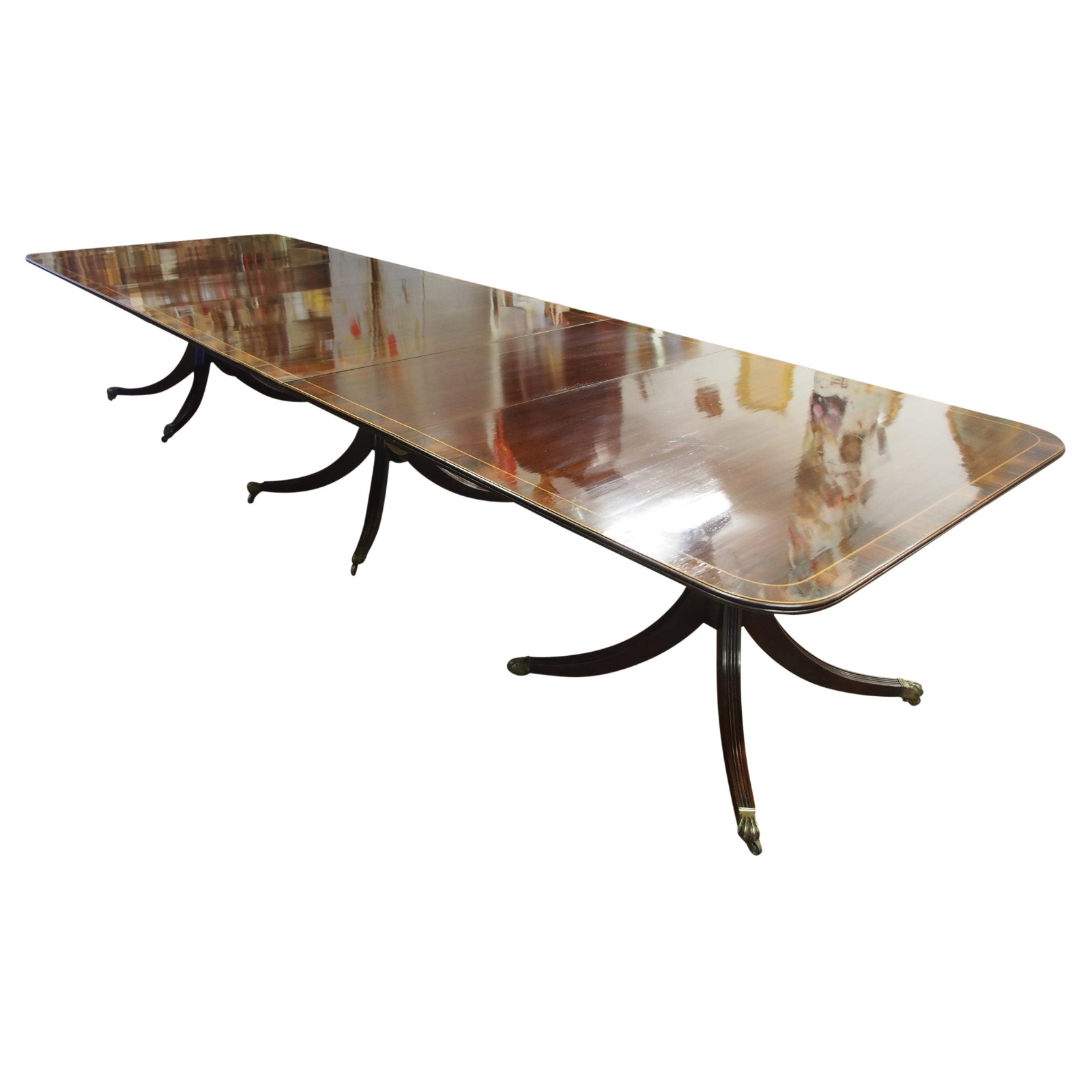 Regency Style Triple Pillar Mahogany & Rosewood Dining Table c.1930