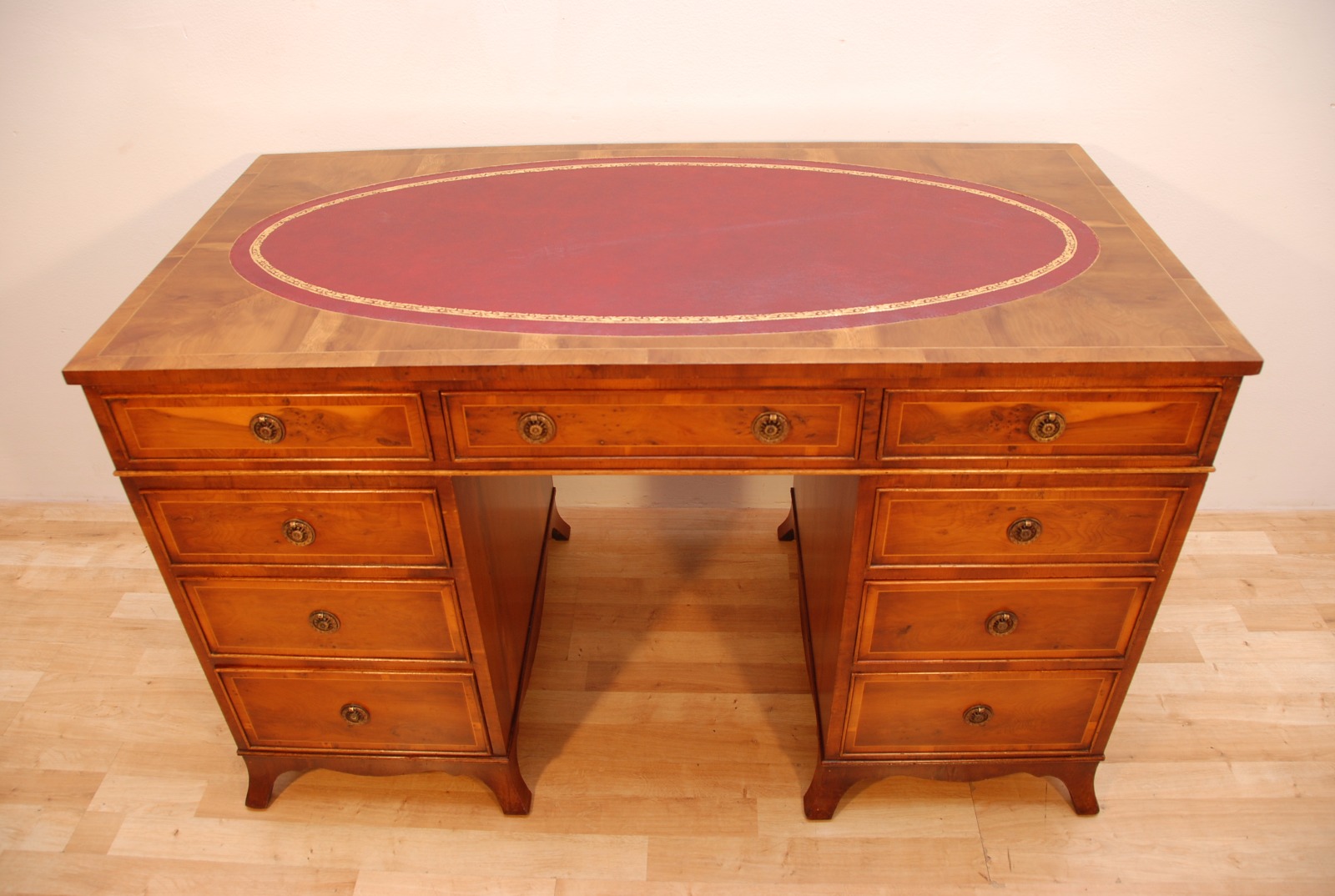 Regency Style Yew Writing Pedestal Desk Leather Top
