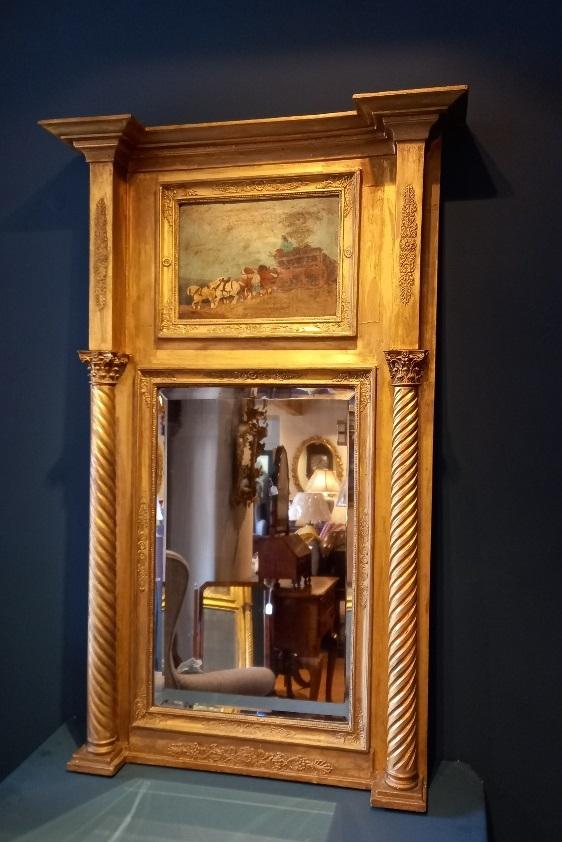 Regency Timber Gilt Mirror with Painted Scene